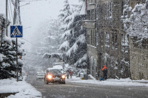 Видимость из-за снегопада в Сочи снизилась до 500 метров. Это совсем нехарактерно для местного климата.
