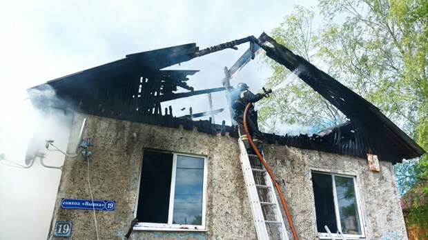 Утром 18 мая в совхозе "Вышка" полностью сгорел частный дом. Вызов спасателям поступил в 11.02, через несколько минут одна за другой подъехали пять машин. По-видимому, пожарных вызвали поздно - к моменту приезда первой машины дом №19 в "Вышке" уже полыхал от фундамента до крыши.