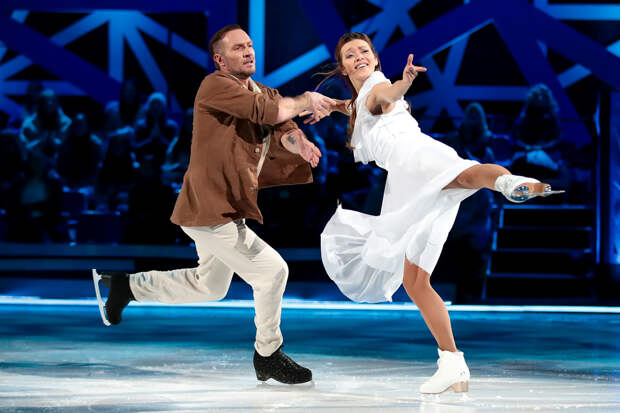 Зрители овациями приветствовали его стоя. Роман вышел на середину арены, обнял супругу. Это оказалось частью ее номера. Так, обнявшись, под аплодисменты зрителей, они покинули лед.