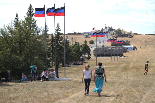 На Саур-могиле, мемориале Донбасса исторического значения, сегодня состоялся концерт, посвященный Дню освобождения региона от немецко-фашистских захватчиков. Поддержать регион в борьбе с неонацистами приехало два десятка суперзвёзд России, в том числе популярные юмористы, выходцы из команды КВН "Камызяки" Денис Дорохов и Азамат Мусагалиев.