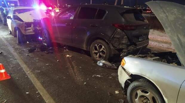 Родькина, выехал на встречную полосу и врезался в Kia Sportage под управлением 39-летней женщины. Двигавшийся попутно 19-летний водитель Nissan, не выдержав дистанцию до Kia, врезался в автомобиль.В дорожной аварии травмированы водители ВАЗа и Kia. В отношении мужчины за рулем ВАЗа составили административные протоколы.
