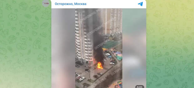 Согласно данным, опубликованным в Telegram-канале "Осторожно, Москва", после хлопка машину мгновенно охватило пламя.