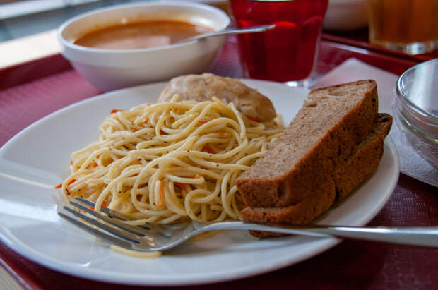 На кадрах были запечатлены слипшиеся макароны и "резиновая" сосиска, которую никак не удалось располовинить ложкой одному из учеников. Вначале люди выразили свое негодование, но вскоре выяснилось, что это была шутка одного из учеников.
