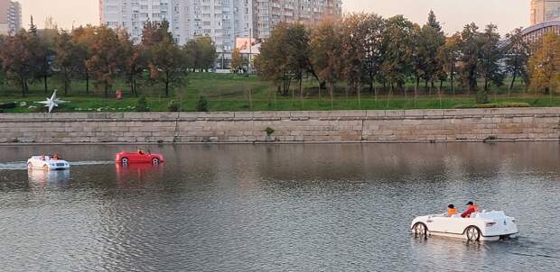 за полчаса. А машинки — 700 руб. днём и 800 руб. вечером за то же время. Желающих много. По вечерам и в выходные — очередь.Где взять в аренду "водоплавающий автомобиль"