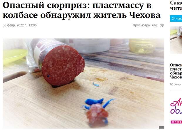 Однако колбаса должна быть и съедобной. Случай, произошедший в Чехове, о котором рассказало издание «Чехов сегодня» - из разряда экстраординарных. Откуда могла попасть пластмасса в колбасу?