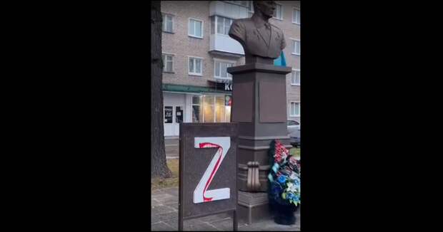Знак с буквой Z установлен возле памятника основателю ВДВ Василию Маргелову.