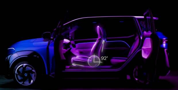 В салоне машины всё минималистично. Например, нет вообще никаких кнопок. Но это только у прототипа. В серийной версии они появятся. Управление автомобилем будет выполняться через дисплей, который разместили на руле прямоугольной формы. Подобные можно встретить на некоторых моделях Tesla. У электрокара имеются проекционный экран и мультимедийная система. Она позволит использовать мессенджеры и даже играть на сенсорном экране.
