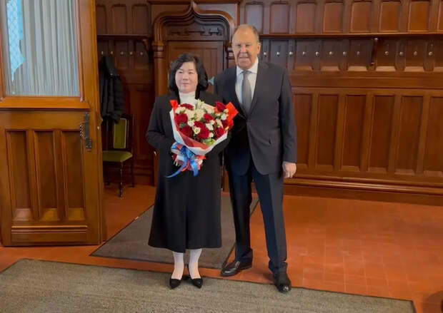 Начали красиво".В своем Telegram-канале Захарова опубликовала видеозапись этого момента: Сергей Лавров вручает Цой Сон Хи букет из красных и белых роз. Глава МИД КНДР, принимая цветы, с теплой улыбкой поблагодарила на русском языке.