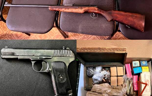 Как оказалось, мужчина хранил на своем участке небольшой арсенал. Правда, с какими целями, неизвестно.