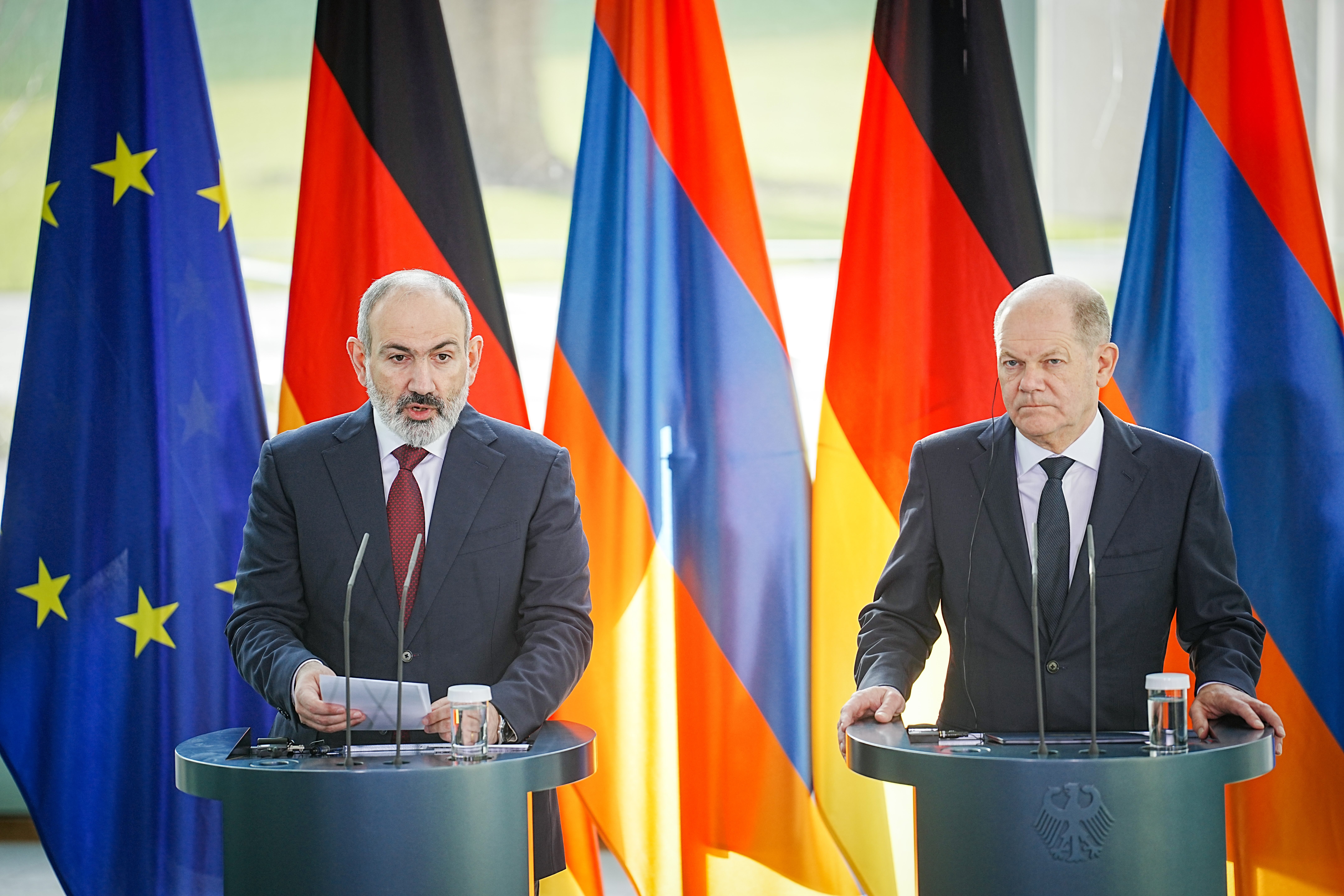 Никол Пашинян в ходе совместной с Олафом Шольцем пресс-конференции сделал заявление об антирусских санкциях. По словам армянского главы правительства, товарооборот между Ереваном и странами Евросоюза растёт. А России, несмотря на то что является дружественной страной, Армения в обходе наложенных санкций не помогает.