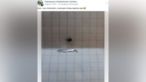 С первым клещом столкнулись жители Березовского. Где именно они обнаружили первого клеща, очевидцы не сообщают, однако к посту прилагают снимок, на котором запечатлен клещ.