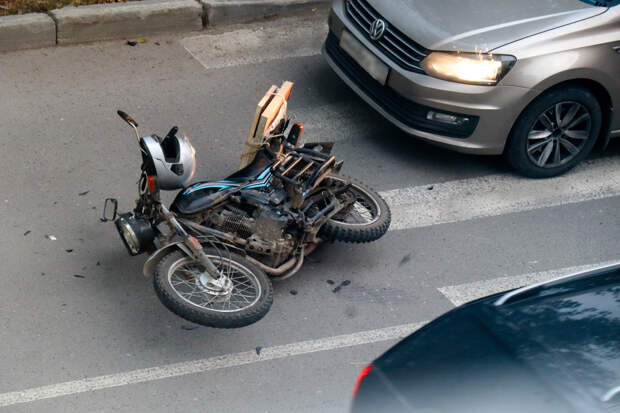 На мотоцикл вылетела легковушка.