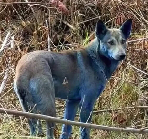 "Нет, такого не может быть, синим, и светиться как фосфор тоже не могут, иначе они бы уже не жили. Нашли какие-то средства и возможно, собаки спят в каких-то местах, и конечно, они просто испачкались, это физически может произойти. Просто они могли испачкаться тем же медным купоросом или ещё чем-то, так как всё осталось после деятельности человека.".