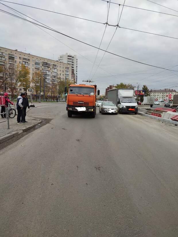Во вторник, 10 октября, утром, в 09:10 произошло ДТП в центре Челябинска. На перекрестке Свердловского проспекта с улицей Воровского столкнулись "Опель Астра" и КАМАЗ. Место здесь узкое, идут дорожные работы. Оба автомобиля двигались в попутном направлении, но в итоге самосвал совсем не по-джентльменски прижал немецкую иномарку с автоледи за рулём.