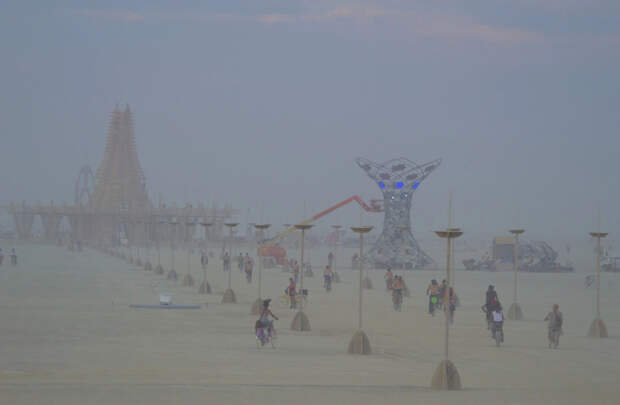 На территорию палаточного городка Блэк-Рок Сити, расположенном на дне высохшего озера в пустыне Блэк-Рок штата Невада, США, обрушилась мощная песчаная буря. Непогода серьёзно повредила лагеря участников фестиваля Burning Man, в том числе построенные для мероприятия инсталляции, передаёт газета San Francisco Chronicle.