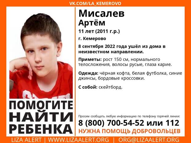 В Кемерове ещё 8 сентября пропал 11-летний мальчик - предполагается, что ребёнок мог самостоятельно поехать в гости к другу в Новосибирскую область.