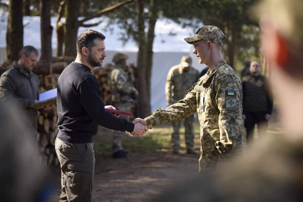 По словам президента Украины, он в Марьинке и Угледаре он встретился с участниками боевых действий украинской армии и наградил их
