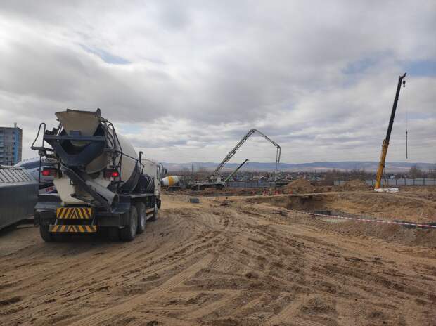 В настоящий момент стройплощадка представляет из себя котлован, в который заливают бетон.
