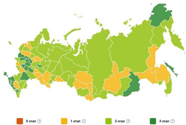 Ситуация с распространением инфекции сегодня такова: лишь полтора десятка регионов находятся официально на третьем, "свободном", этапе выхода из карантина. Правда, так считают в Москве. Большинство из них, пребывая на втором этапе, по факту основную часть ограничений давно сняли. Фото: скрин с сайта Стопкоронавирус.рф