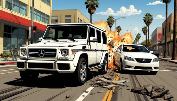 Многодетная мать из Дагестана на "гелике" протаранила автомобиль грабителей, которые ворвались в её дом в Лос-Анджелесе.