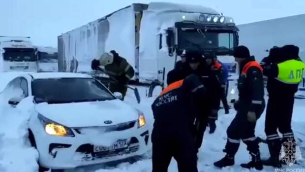 сл. Сергей Филиппов. Техника растаскивает застрявшие грузовики. Созданы 7 пунктов обогрева. В них находятся более сотни человек, в том числе 34 ребенка. МЧС просит водителей объединяться и помогать друг другу в ожидании помощи.Причиной ситуации, из-за которой на трассе встали тысячи машин, стал снежный заряд, пронесшийся над югом России вчера вечером. Некоторые водители стоят в пробке под ростовом уже по 15-16 часов. На исходе топливо, вода и еда.