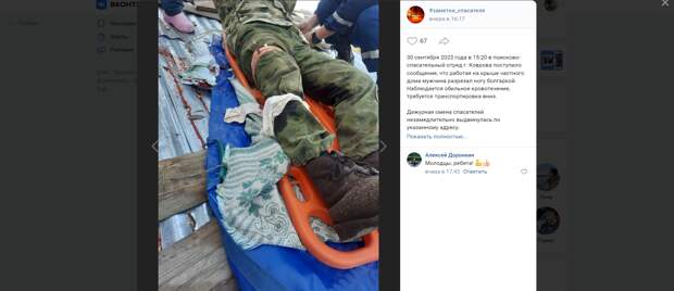 В Коврове мужчина случайно разрезал себе ногу болгаркой во время ремонта крыши. Об этом инциденте рассказал блогер и сотрудник «ГО и ЧС» Михаил Быков во «ВКонтакте» в группе «#заметки_спасателя». Сообщение с просьбой о помощи поступило в местный поисково-спасательный отряд 30 сентября в 15.