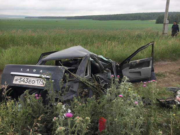 В Уйском районе Челябинской области водитель на "Ладе Приора" с 5-ю пассажирами вылетел с трассы. На фото с места происшествия видно, что автомобиль восстановлению не подлежит: его буквально сплющило от удара.