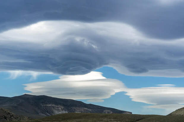 Такие необычные по своей форме облака возникают из-за турбулентности в горных местностях или над другими крупными препятствиями рельефа.