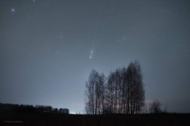 Александр рассказал, что он специально поехал подальше от жилой застройки, где легче наблюдать за движением небесных светил. Не мешает городская засветка.«Увидел в новостях, что будет возможность понаблюдать комету, и охотился за ней специально», — поделился фотограф с URA.RU.