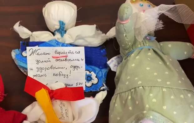 В бандеролях, которые доставили в отделение "Народный фронт Челябинская область" — много разных "приятностей", которые, несомненно, порадуют русских воинов, несущих непростую службу "за ленточкой". Куклы-обереги дети сделали своими руками.