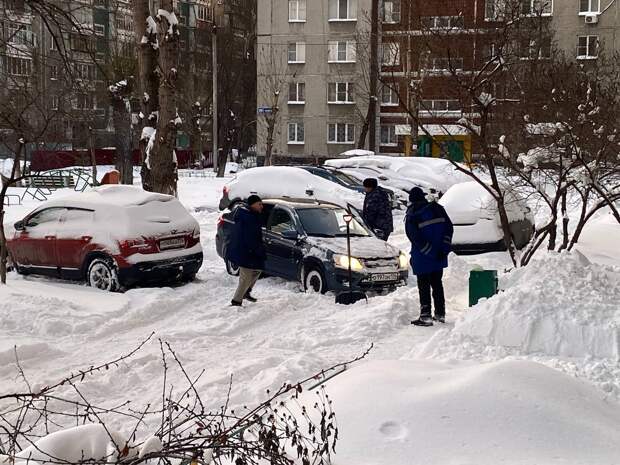 Наш корреспондент проснулась утром 27 декабря от характерного звука за окном. Неужели дворник чистит тротуар и выезды для авто? Нет. Всё по-прежнему: автомобилисты пытаются самостоятельно "прорубить" себе путь через сугробы. Без лопаты в эти дни со дворов не выехать.