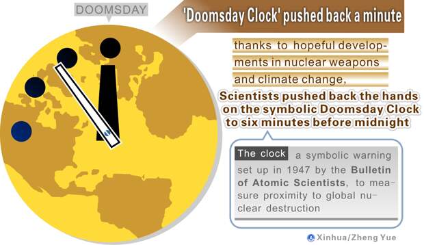 Знаменитые "Часы Судного дня", которые существуют с 1947 года впервые за все время максимально близко подошли к ядерной полуночи — теперь до "точки ядерного апокалипсиса" остается 90 секунд.