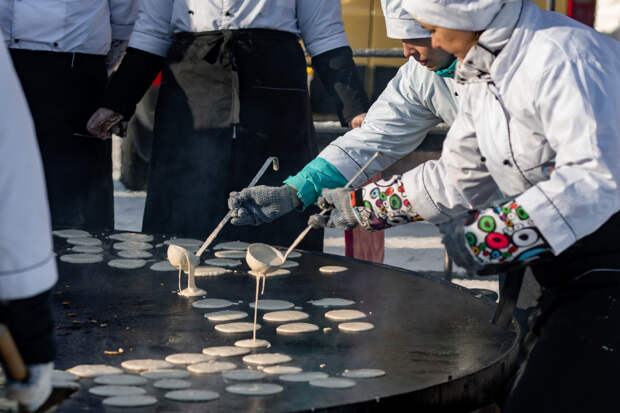 Помимо блинов было приготовлено 2,5 тонны гречневой каши и 9,4 тысячи булочек.