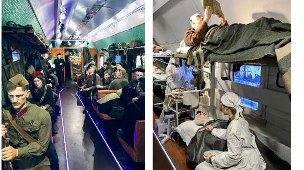 Чтобы попасть на выставку, нужно обязательно зарегистрироваться на сайте проекта.Теперь о «начинке» уникального поезда. Сегодня ни в одном музее мира нет такого количества многофигурных скульптурных композиций, как в «Поезде Победы». Уникальность поезда не только в этом. Пресс-служба правительства Владимирской области сообщила о мультимедийном сопровождении экспозиции. Это 50 видеопроекторов, 18 видеостен и 12 тач-столов, которые световыми и звуковыми эффектам воссоздают воздушные бои и массированные танковые атаки. Рисуют картины походного солдатского быта и воспоминания о мирном довоенном времени. Оттого экспозиция проникновенна, а ощущения от увиденного – остры.