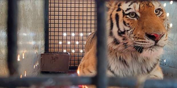 В Подмосковье доставили травмированного амурского тигра. Хищника нашли в январе 2023 года в окрестностях Вяземского Хабаровского края. Он нападал на собак и представлял опасность для людей. Тигра поймали и поместили в центр реабилитации.
