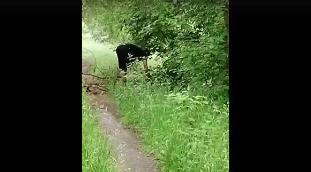 ) и выложил в соцсеть видеоролик, на котором в кустах человек в чёрной одежде согнувшись что-то активно ищет в кустах, лица его не видно.Ищет, ищет закладку, копает. Аж, вдвоём!