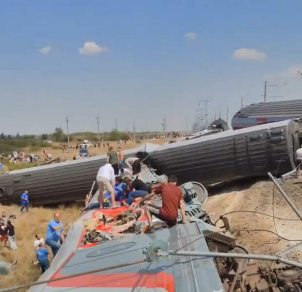 Всего в поезде ехало порядка 800 человек. По данным телеграм-канала Mash, пострадали 10 человек.