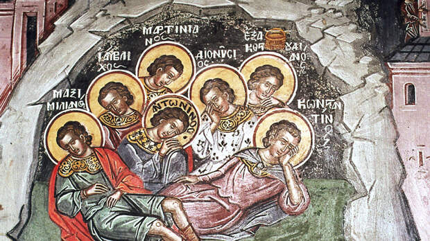 Скрываясь от суда, юные исповедники уединились в далекой пещере, но вскоре на них донесли, и император велел заложить вход в пещеру камнями, чтобы убить непокорных христиан. Господь навел на юношей чудесный сон, продолжавшийся почти два столетия. Очнувшись же, своим явлением миру Эфесские отроки открыли тайну грядущего воскресения мертвых, опровергнув еретиков, отрицавших это чаяние всех христиан.