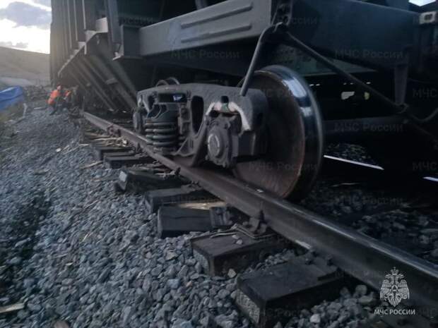 На месте работает оперативная группа пожарно-спасательной части № 26. К месту схода направили четыре восстановительных поезда.