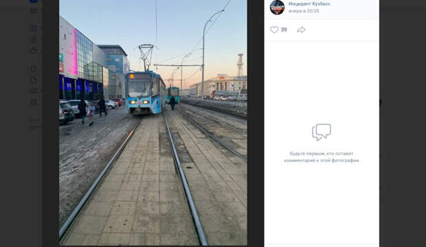 Сегодня утром, 16 марта, в соцсетях появилась информация о том, что на Кузнецком проспекте напротив торгового центра “Я” сошёл с рельсов трамвай №10. В качестве иллюстрации автор поста приложил фотографии, на которых, действительно, стоит трамвай в том месте, где он обычно не останавливается, в кадр также попала, предположительно, водитель трамвая, которая находится на улице и с кем-то говорит по телефону.
