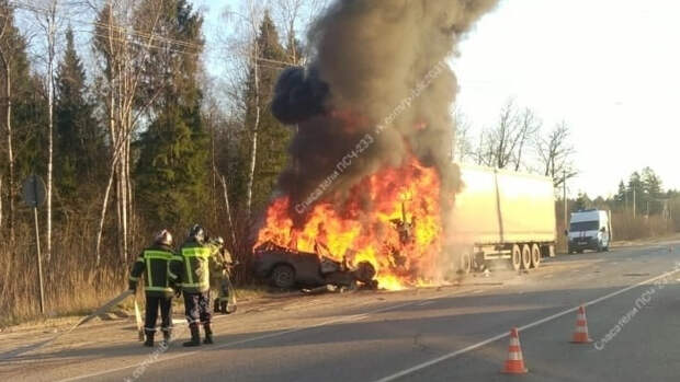 В Сергиево-Посадском городском округе Подмосковья в огненном ДТП погибли два человека. По сообщению «Мособлпожспас», ДТП случилось утром 16 ноября недалеко от деревни Мостовик. Автомобиль BMW на полной скорости врезался в припаркованную на обочине фуру.