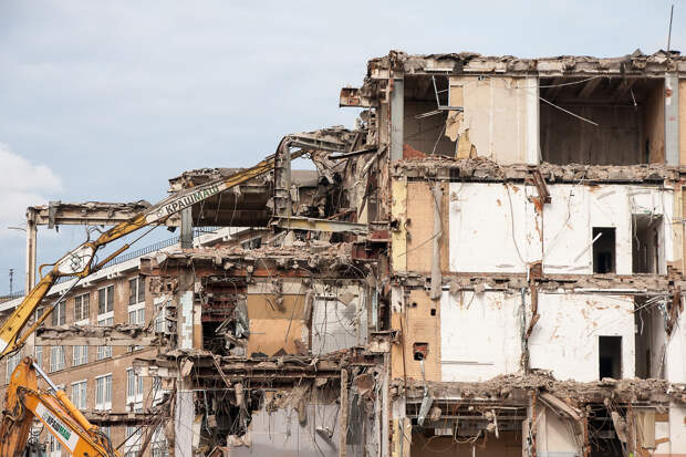 В Северной столице продолжают сносить дома Басевича, несмотря на крики градозащитников о том, что один из их людей остаётся в здании.