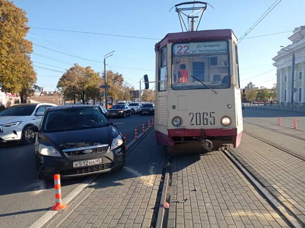 В Челябинске во вторник, 20 сентября, примерно в 16:40 на улице Кирова напротив органного зала произошло тройное ДТП: столкнулись трамвай и два легковых автомобиля. Сильнее всего оказался помят Ford: он заехал за оранжевые столбики и получил удар в левую сторону от двигавшегося трамвая. В ситуации предстоит разобраться специалистам ГИБДД.