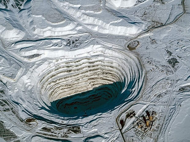 В якутском городе Мирный находится одно из самых впечатляющих инженерных сооружений в мире - алмазный карьер «Мир». Его глубина превышает 700 метров, а диаметр составляет около полутора километров. Масштабы разработки настолько значительны, что этот гигантский кратер заметен даже с орбиты и на спутниковых снимках напоминает след от падения метеорита.