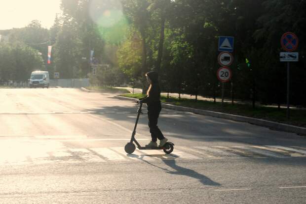 Ребёнок уехал кататься на самокате.