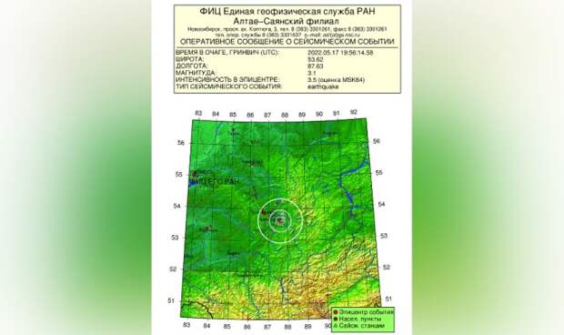 Землетрясение произошло в ночь на 18 мая неподалеку от южной столицы Кузбасса.