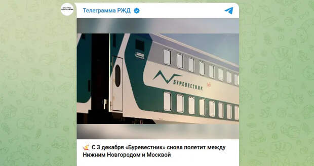 После более чем десятилетнего перерыва на маршрут между Москвой и Нижним Новгородом возвращается легендарный советский поезд "Буревестник". Обновленный состав с 3 декабря 2025 года начнет курсировать между столицей и родиной Максима Горького.