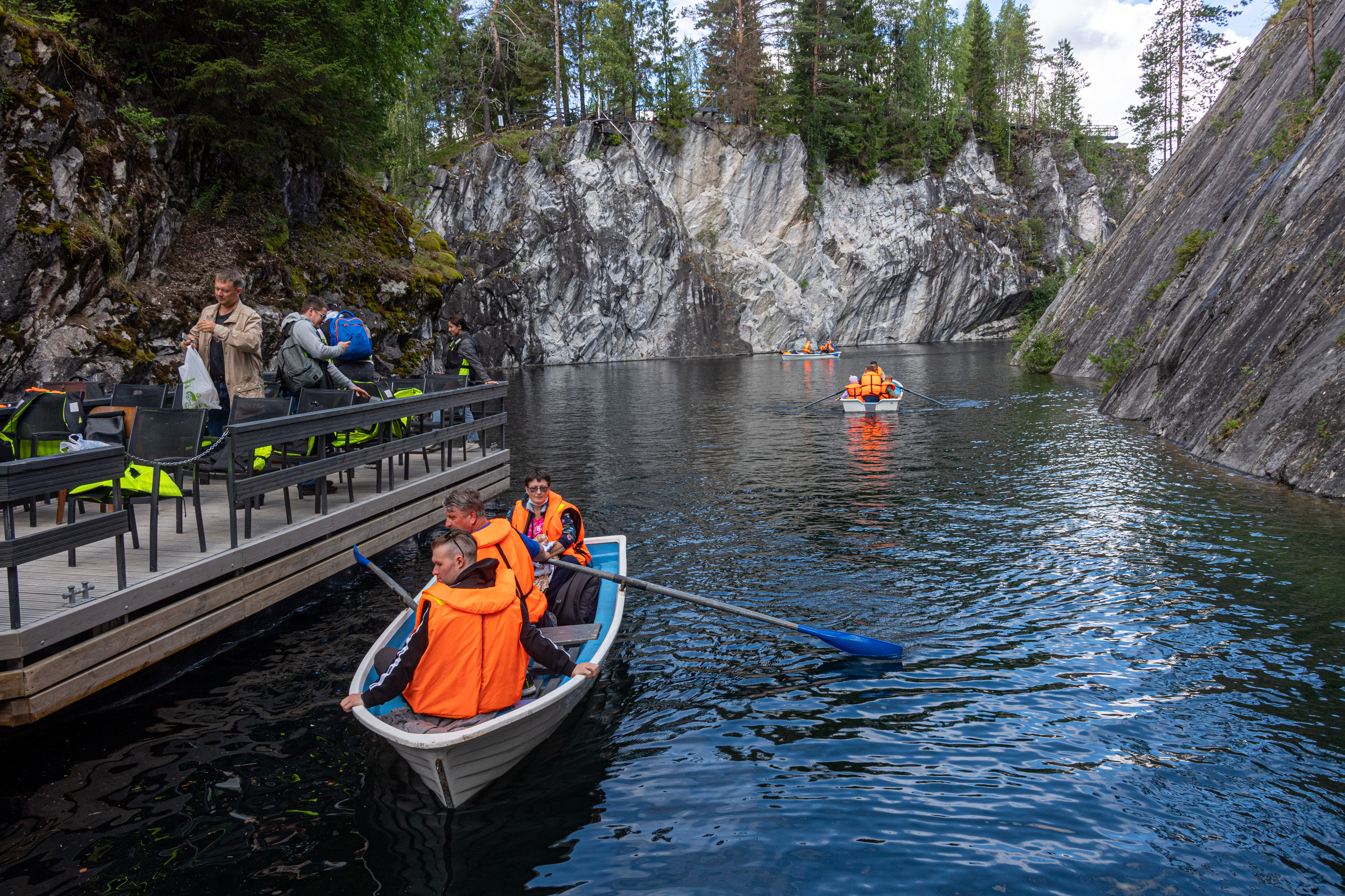 "Вы должны надеть спасательный жилет, иначе вы не сможете поплавать. У намокших людей сносит крышу, в страшное время живем. Надевайте", - категорично говорит продавец жилетов.