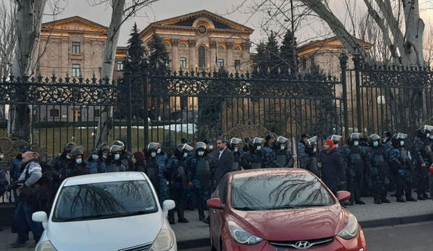 К часу дня к зданию аппарата премьер-министра начали стягиваться полицейские и несогласные с курсом правительства Пашиняна. Многие из них открыто заявляют, что нынешнего премьер-министра надо лишить поста.