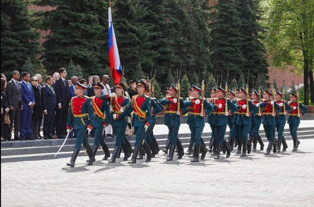 Русский президент вместе с зарубежными лидерами возложили цветы к Могиле Неизвестного Солдата.